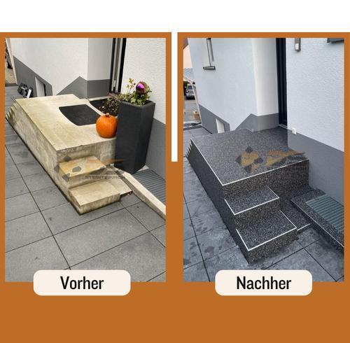 Experten für die Verlegung von Steinteppichen: Wir renovieren Treppen, Balkone, Terrassen und mehr mit Natursteinteppichen. Vereinbaren Sie einen Termin und erhalten Sie ein unverbindliches Angebot.
